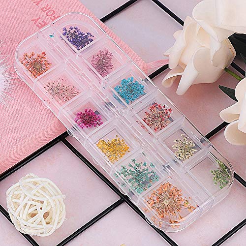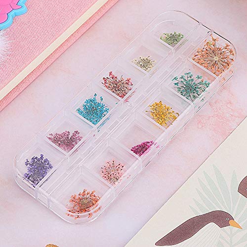 Vendite Pazze 12 colori naturali fiore essiccato per gel UV Nail Art, fai da te Decor Design(A), 12 colori di fiori secchi naturali per gel UV in acrilico Consigli per nail art Des