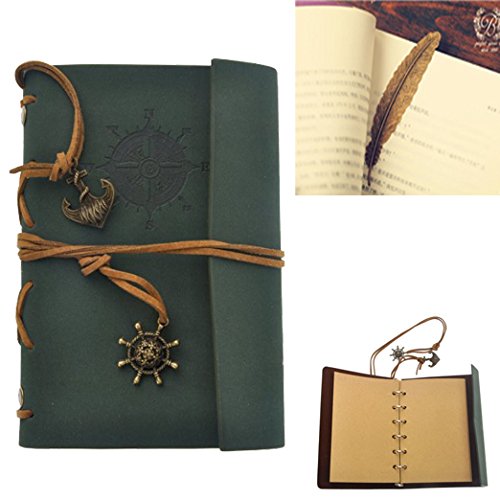 Le vendite di primavera 2017 valentoria ® in pelle classica stile vintage diario vuoto corda nautico scrittura diario con Free Classical delicatezza piuma in metallo segnalibro regalo per lo zio verde