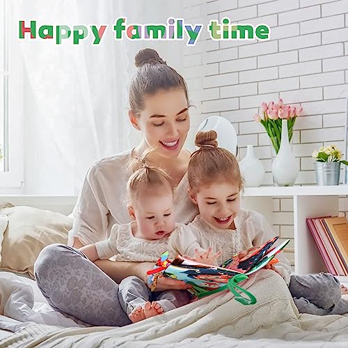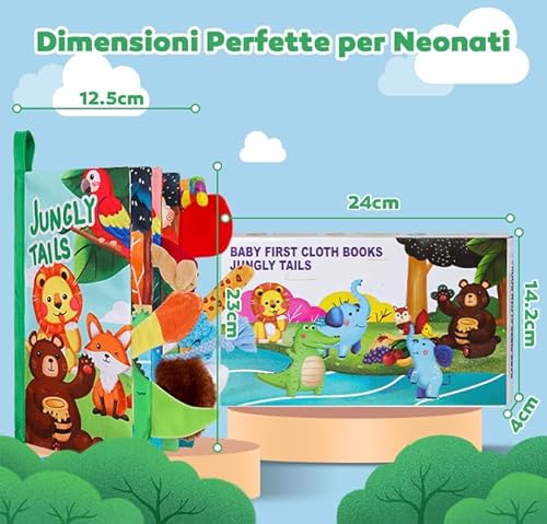 【Libro di stoffa per bambini】: i nostri libri per bambini in tessuto presentano pagine morbide e morbide che emettono suoni fruscianti o cigolanti quando vengono girati, incluso un dispositivo BB all'interno del libro. Aiuterà a sviluppare la coordinazione mano-occhio e le capacità motorie. I colori ad alto contrasto su ogni pagina promuovono anche lo sviluppo della vista e le capacità di riconoscimento dei colori, mentre i suoni forniscono stimoli uditivi e visivi che i bambini adorano.