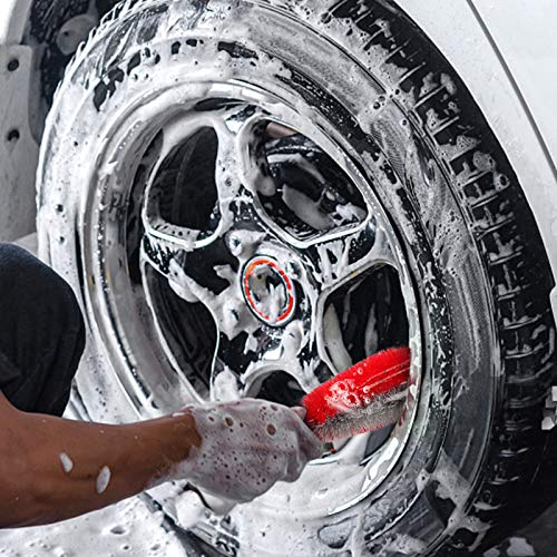Venga amigos Spazzola per la Pulizia dei Pneumatici dell'Auto, 2pcs Spazzola per Ruote per la Pulizia dei Cerchi in Lega dell'Auto e delle Spazzole per Pneumatici, Rosso