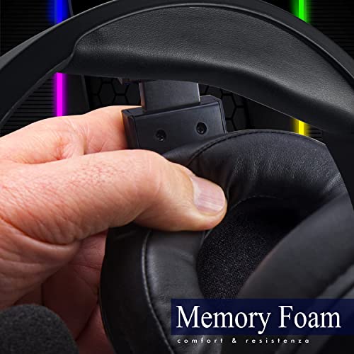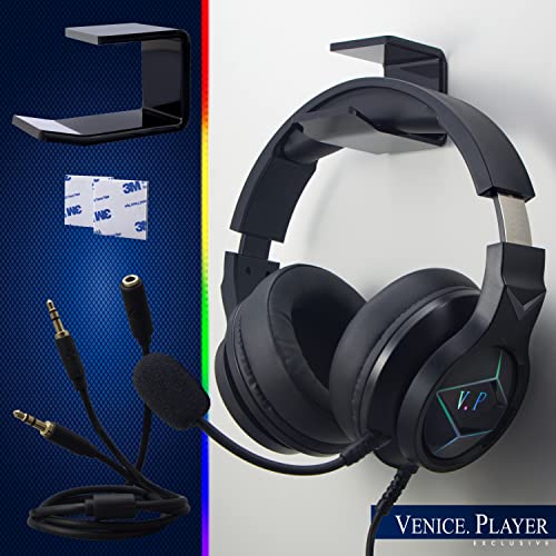 VENICE PLAYER Cuffie da Gaming Con Filo E Microfono Staccabile Con Controllo Del Volume, Per PS4/PS5/Xbox/Switch/PC, Padiglioni In Memory Foam, Supporto Porta Cuffie Adesivo Incluso, Illuminazione Led