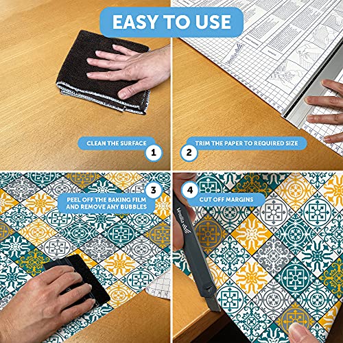 Venilia Pellicola adesiva | Piastrelle orientali giallo turchese | 45cm x 2m, Spessore 95μ | Pellicola autoadesiva per mobili o cucina, carta da parati | PVC senza ftalati | Prodotto in UE