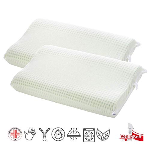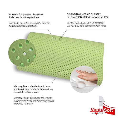 VENIXSOFT Coppia cuscino per letto ortopedici in memory foam Anti Soffoco Terapeutico in linfa DI ALOE VERA dall'effetto cervicale rilassante e riposante e fodera cotone-DISPOSITIVO MEDICO CLASSE I-made in Italy