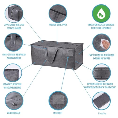 Robusto e facile da trasportare: set di manici lunghi e cinghie laterali posteriori aggiuntive che consentono di trasportare la borsa come uno zaino. Facile da riporre in un armadio, garage o sotto il letto.