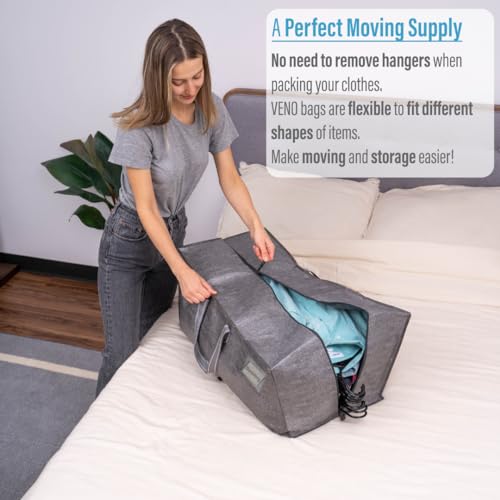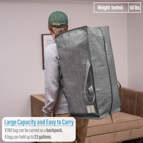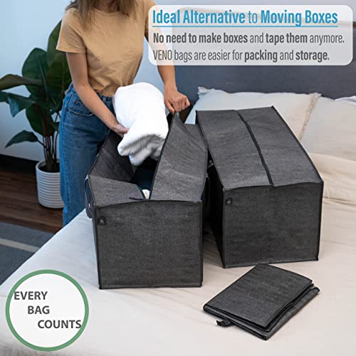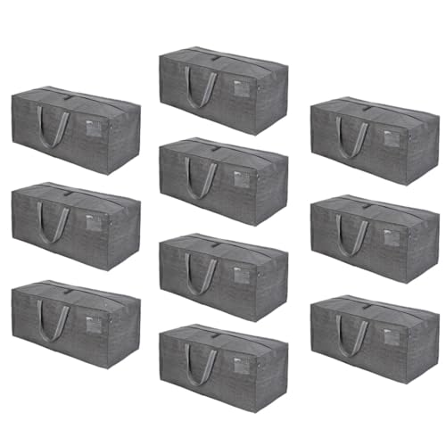 VENO Set da 10 Borse da trasloco extra-large resistenti con cinghie da zaino, spostare oggetti, zip e manici resistenti, porta abiti, cesta dei panni, riutilizzabile e sostenibile (Grigio, Set da 10)