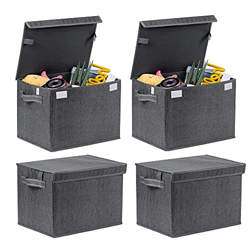 VENO Confezione da 4 Organizer Armadio Grandi con Coperchio, Organizer Bagno, Cubo, Scatole, Contenitore per Casa, Ufficio, Armadio, Giocattoli e Vestiti (Nero - Set di 4)