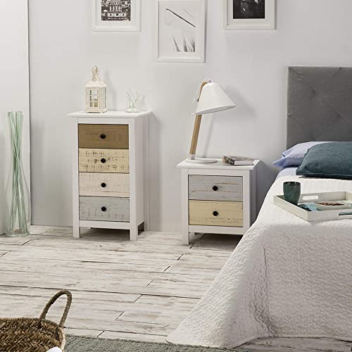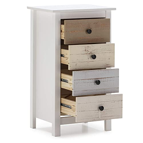 VS Venta-stock Cassettiera Magda Bianco con 4 cassetti di Diversi Colori, Realizzato in pino Massiccio