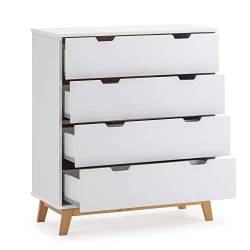 VS Venta-stock Cassettiera Miranda Bianco con 4 cassetti