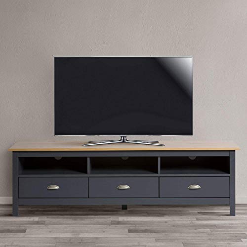 VS Venta-stock Mobile TV Bora Bora 3 Cassetti, Realizzato in Pino Massiccio, Colore Antracite, 158 CM