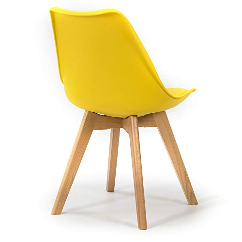 VS Venta-stock Pack di 2 Sedie da pranzo Klara Giallo, Gamba in Legno e Sedile Imbottito, Stile Nordico