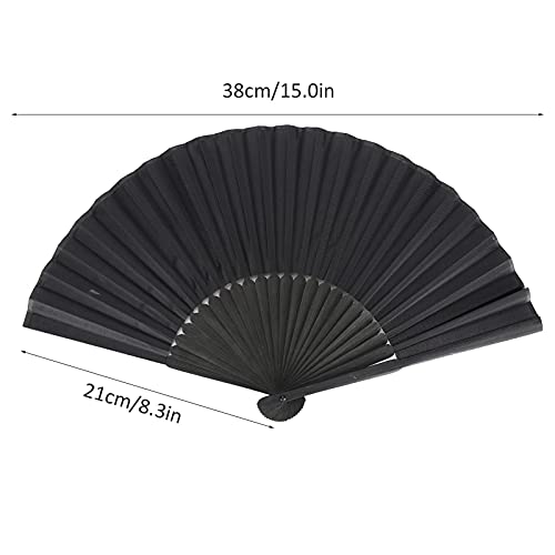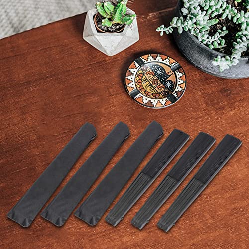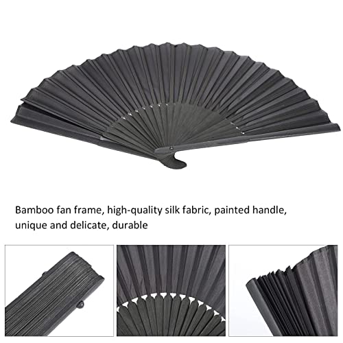 Ventagli pieghevoli da 3 pezzi, ventagli di seta di legno portatili in stile retrò per la decorazione con manica nera, nera