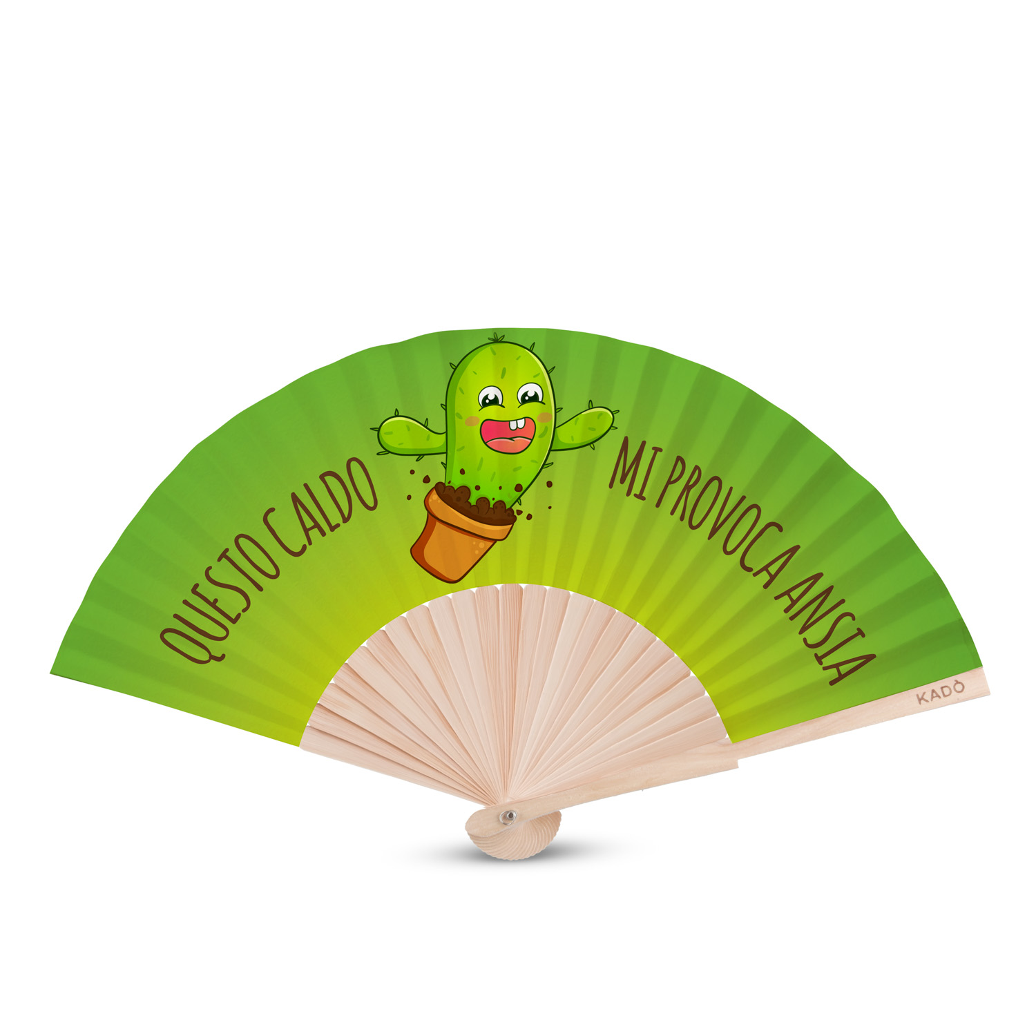 Quest'estate tuffati nel fresco con la nuova collezione di ventagli legno Kadò originali e divertenti! Disegni simpatici e scritte irriverenti che strapperanno un sorriso anche nelle giornate più afose. Un perfetto gadget da regalare al collega spiritoso e ad amici e parenti che soffrono particolarmente il caldo. La struttura in legno è completata da inserto in tessuto con stampa colorata. Il ventaglio a mano ti aiuterà a vivere la tua estate con vivacità e... freschezza! Dimensioni: 42x23 cm.