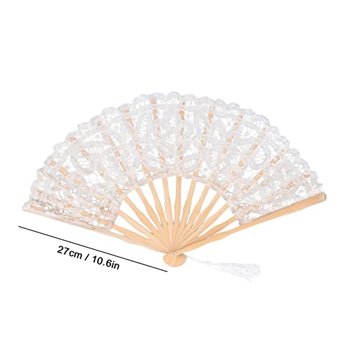 Ventaglio Pieghevole, 27cm Ventaglio di Pizzo in Stile Vintage Cinese con Nappa, Ventaglio a Mano Cava per La Decorazione di Abiti da Ballo per Feste di Matrimonio (Beige)