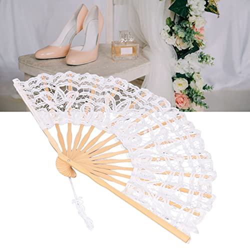 Ventaglio Pieghevole, 27cm Ventaglio di Pizzo in Stile Vintage Cinese con Nappa, Ventaglio a Mano Cava per La Decorazione di Abiti da Ballo per Feste di Matrimonio (Bianco)