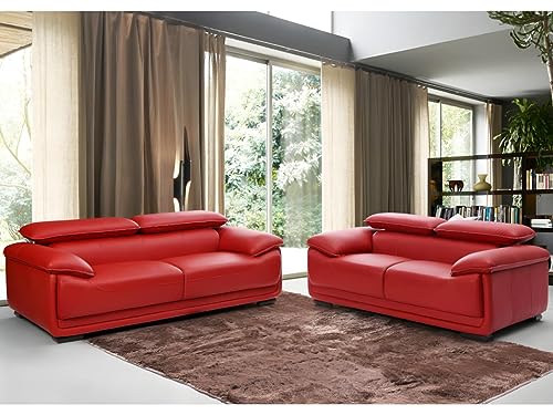 Vente-unique - Divano 3 posti in pelle Rosso - MACELO