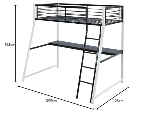 Il letto a soppalco MALICIA - letto 90 x 190 cm - scrivania integrata - rete a doghe inclusa. Colori: bianco e nero. Dimensioni: L200 x P138 x H182 cm. Il letto a soppalco MALICIA è la combinazione perfetta di praticità e modernità!