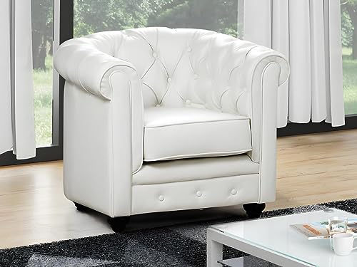 Vente-unique - Poltrona CHESTERFIELD in similpelle Bianca