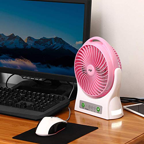 Ventilatore alimentato Miady 19,1 cm personale ventilatore da tavolo ventilatore USB 4000 mAh ricaricabile girevole a 150 °, ventola di raffreddamento con luce LED per ufficio casa e viaggi (3 velocità) rosa