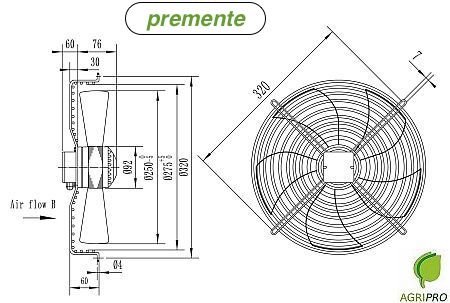 Ventilatore assiale VENTOLA DN 250 mm PREMENTE W 55 monofase