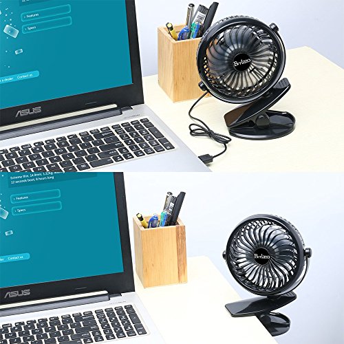Rotazione a 360° e 2 in 1: comodamente Si utilizza come ventilatore da tavolo o con clip, vi rinfrescherà ovunque grazie al design mini portatile, può essere utilizzato su oggetti fino a 5 cm di spessore;