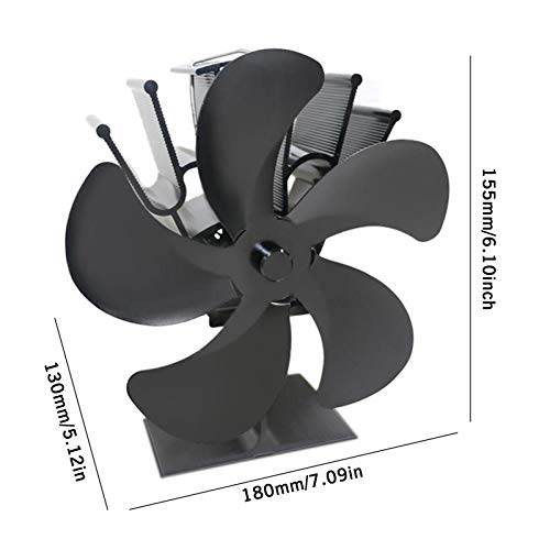 Ventilatore per camino, con 5 pali, termometro, senza corrente, ventola per camino, con protezione da surriscaldamento, pale del rotore, stufa a legna