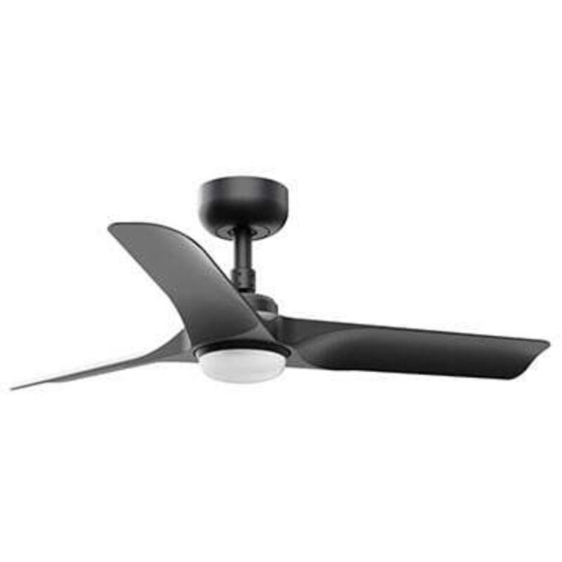 Ventilador de techo con luz negro, modelo HEY S de FARO HEY S es un ventilador de techo con luz diseñado por Faro Lab con motor DC ultra compacto ideal para estancias menores de 13 m². Cuenta con un LED integrado que proporciona 3 temperaturas de color entre cálida, neutra y fría (3000-4200-6500K). Las palas de madera negra de este ventilador de techo con luz envuelven el motor, consiguiendo un efecto ultra ligero. Accionado por mando a distancia, incluido. Este ventilador negro dispone de 6 velocidades regulables, función inversa y es apto para techo inclinado.
