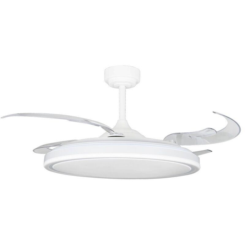 Il ventilatore da soffitto LED Moss XL con pale retrattili della marca CristalRecord è un'opzione moderna e pratica per ogni stanza. Con un diametro di 60 centimetri (123 centimetri in funzione), è progettato per ambienti di oltre 20 m3, fornendo ventilazione e illuminazione in un unico apparecchio. Questo ventilatore è dotato di illuminazione LED dimmerabile, con un'intensità di 9000 lumen e tre temperature di colore (3000-4000-6000K), che permette di regolare l'illuminazione in base alle esigenze del momento. Inoltre, il telecomando permette di selezionare la funzione brezza, attivare la modalità luce notturna o programmare lo spegnimento del ventilatore dopo 2-4 ore. Il motore DC ultrasilenzioso offre sei velocità di rotazione e una funzione di inversione inverno-estate, adattandosi alle esigenze di ogni stagione. Le sue lame retrattili trasparenti gli conferiscono un tocco moderno ed elegante, mentre la sua finitura bianca lo rende versatile per qualsiasi stile di decorazione.