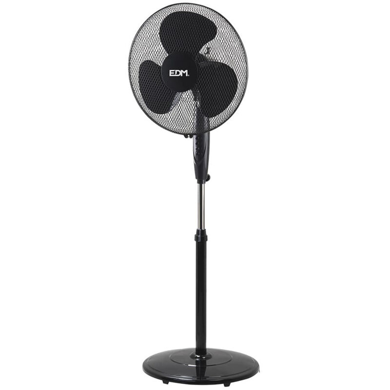 Ventilatore de pie con base circolare. colore nero. potenza: 45w pale: ø40cm altezza regolabile 110-130cm 3 velocità. griglia de sicurezza. testa e inclinabile regolabile fissa/oscillante flusso d'aria de 3000m³/h 220-240v 50hz 3 pale edm