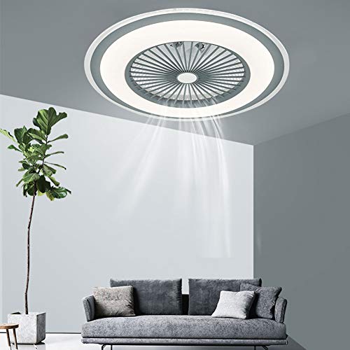 Ventilatore da soffitto con illuminazione e telecomando, lampada da soffitto a LED, ultra silenziosa, velocità regolabile, timer per soggiorno, camera da letto (grigio)