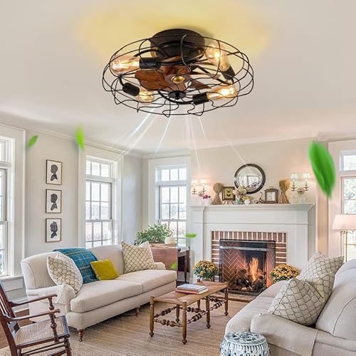 Ventilatore da Soffitto Industriale con Illuminazione e Telecomando LED Plafoniera con Ventilatore Gabbia in Vintage Fan Lampada per Camera da Letto Soggiorno E27 Ventilatore da Soffitto con Luce