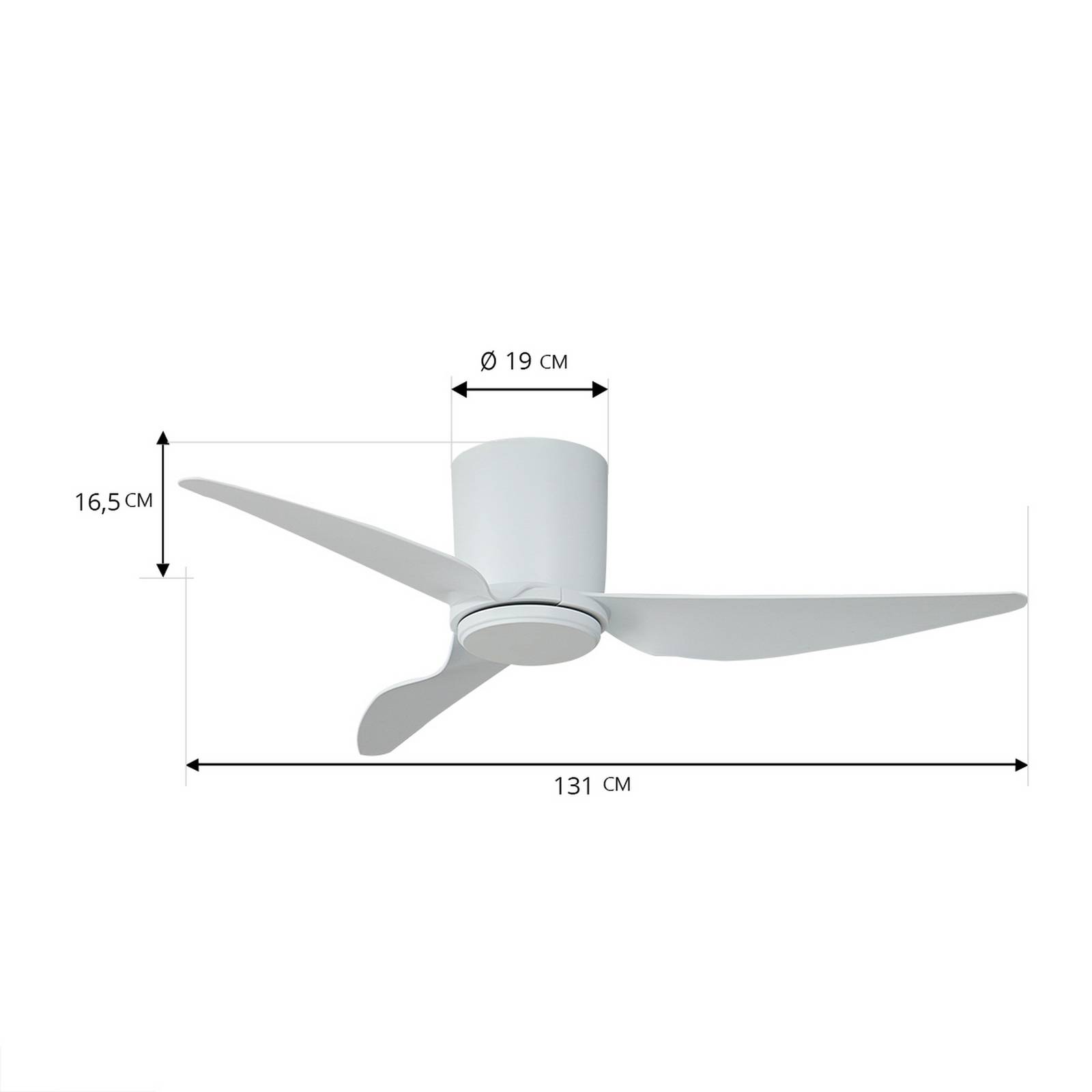 Ventilatore da soffitto Aulon in metallo bianco, telecomando incluso Il ventilatore da soffitto Aulon trasforma qualsiasi camera da letto, soggiorno o sala da pranzo in un'oasi di freschezza. Lo stile moderno del design bianco si integra perfettamente negli interni contemporanei e offre una combinazione di estetica e prestazioni pratiche. Il comodo telecomando consente di regolare facilmente il clima della stanza in base alle esigenze individuali. Che si tratti di una brezza leggera per un'atmosfera rilassante o di una circolazione d'aria più intensa per aumentare la concentrazione, questo ventilatore da soffitto si adatta senza sforzo e diventa un elemento indispensabile dell'ambiente. Dati tecnici - Motore a corrente continua - 4 W a 126 giri/min - 10 W a 196 giri/min - 20 W a 241 giri/min - Circolazione d'aria 60/90/146,8 m³/min - Dimensioni ottimali della stanza 7-12 m² - Livello di potenza sonora 53 dB (A) - Telecomando senza batterie