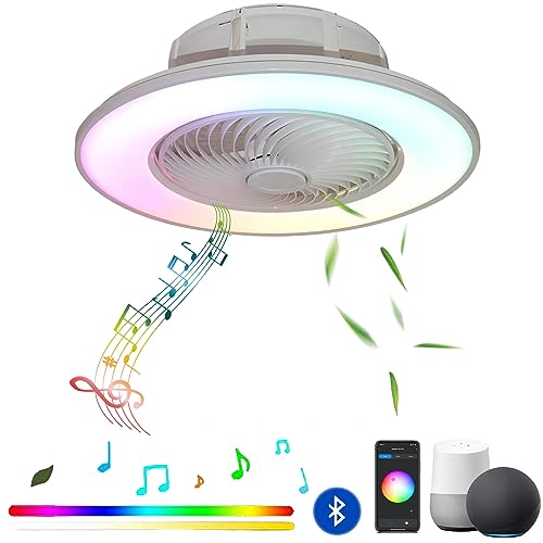 LED RGB Ventilatore da Soffitto con Luce e Remoto, 36W Muto Ventilatore da Soffitto Lampada con Musica Bluetooth APP, 56CM Bianco Ventilatore da Soffitto Compatibile Google Assistant e Alexa