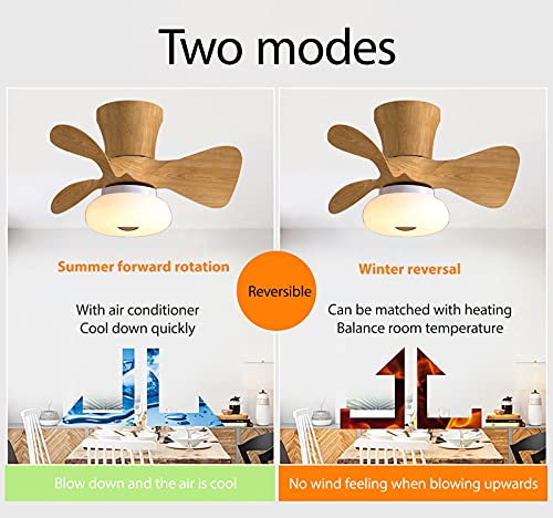 Ventilatore Da Soffitto Con Luce E Telecomando 3 Pale Silenzioso Piccola Plafoniera in Legno Lampada Da Soffitto Led Dimmable 6 Velocità Dc Reversibile Con Timer Per Camera Da Letto