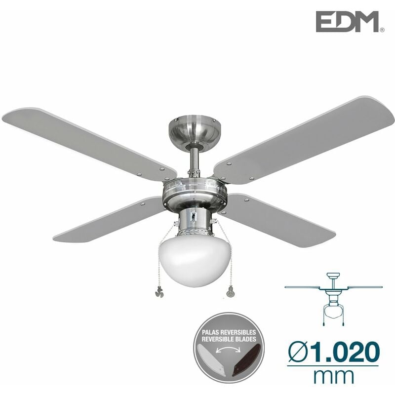 Ventilatore da soffitto modello caribe cromo potenza: 50w pale: ø102cm 3 velocità (interruttore a maniglia) flusso d'aria 4381m³/h ac-220/240v 50hz con luce (1 lampadina e27 max. 60w non inclusa) - 4 pale ip20 edm