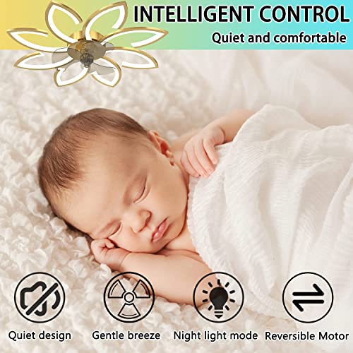 Ventilatore da soffitto moderno con lampada DC motore Silenzioso con telecomando 3 colori Ventilatore regolabile Ventilatore domestico Lampadario per camera da letto (Color: Oro)