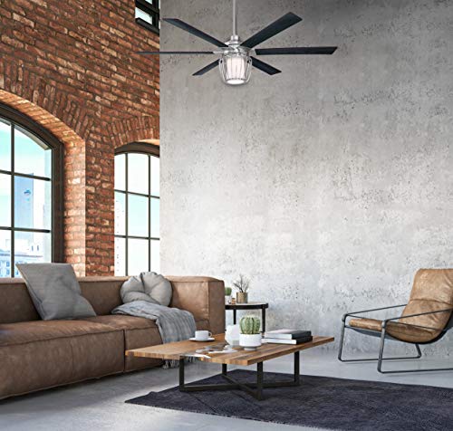 Ventilatore da soffitto in nichel spazzolato da 153 cm Westinghouse Lighting Willa con luce e telecomando, luce LED dimmerabile, vetro smerigliato, paralume a gabbia