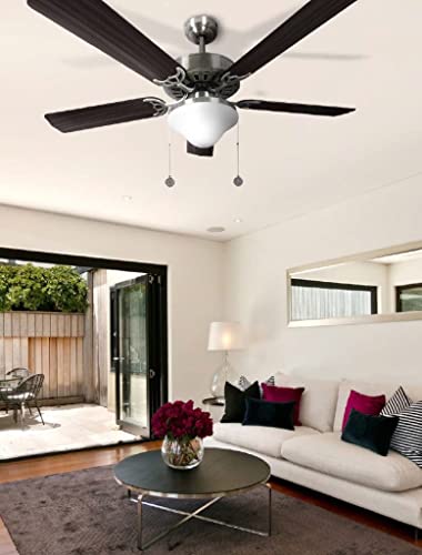 Ventilatore da soffitto mod. Orion con luce, 130 cm Finitura nichel satinato con cinque pale wenge, AkunaDecor