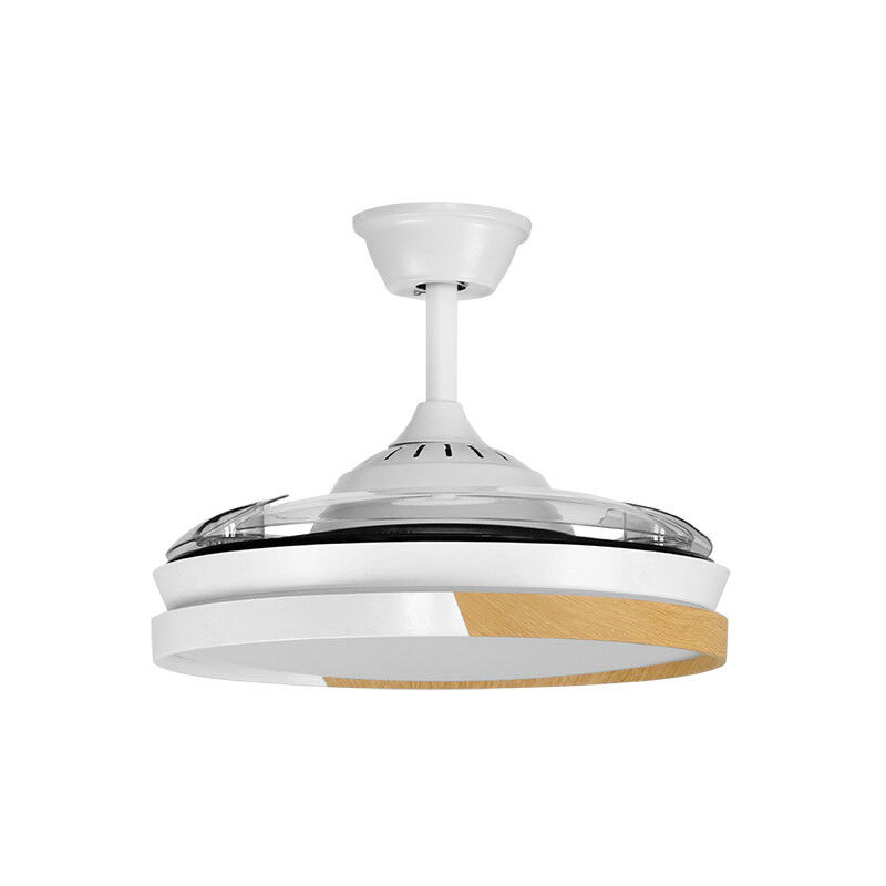 Ventilatore DC serie EMPERADOR in metallo e policarbonato, colore BIANCO/FAGGIO con tre pale DISTRIBUIBILI in ABS trasparente molto resistenti. Dal design molto moderno e innovativo, molto coerente con molteplici stili di decorazione, fungendo sia da lampada che da ventilatore. Motore a corrente continua. Ha sei velocità regolabili. Tecnologia LED integrata dalla potenza di 72W, con 3 TEMPERATURE LUCE (3000-4000-6000K) e 7200 lumen. Controllo dell'aria estiva o invernale. La sua misura è di 31/46x48x48 centimetri con le lame ripiegate e 31/46x106x106 centimetri con le lame spiegate, con due misure di reggisella per installarlo a diverse altezze. Telecomando INCLUSO con MEMORIA COLORI incorporata e TIMER 1/2/4 H. Modello disponibile nei colori bianco/faggio e nero/faggio.