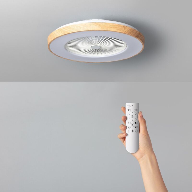 Il Ventilatore da Soffitto Silenzioso Dhalia Legno 58cm Motore DC 55W ha un aspetto industriale ed elegante che lo rende un elemento decorativo e funzionale. Il ventilatore incorpora un motore DC che si distingue per leggerezza, durata, efficienza e basso consumo energetico . Alcuni dei vantaggi di una ventola del motore CC rispetto a una ventola del motore CA sono: - Ventola estremamente silenziosa e senza oscillazioni . Grazie al suo motore DC, siamo in grado di ridurre il rumore emesso dal ventilatore, fino al 50% rispetto ai motori AC, rendendo il ventilatore perfetto per soggiorni di riposo, studio e lavoro. - Basso consumo . I ventilatori con motore CC consumano fino al 70% in meno di energia rispetto ai ventilatori con motore CA, questo significa un risparmio sulla bolletta elettrica della nostra casa. - Sono più veloci da avviare, cambiare velocità e fermarsi. Inoltre, incorpora 6 modalità di velocità rispetto alle 3 o 4 velocità dei motori AC. Dispone di telecomando, con 6