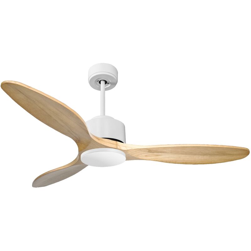 Le pale aerodinamiche in legno massiccio di balsa conferiscono al ventilatore una grande leggerezza. Sono stati lavorati artigianalmente per essere equilibrati e non produrre alcun tipo di vibrazione. Questo modello a 3 pale rifinite in beige ha un diametro di 132 cm e raggiunge grande velocità.