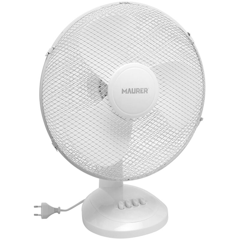 Ventilatore da tavolo - Potenza: 45 w. - Dispone di 3 lame grandi. - 3 velocità. Diametro 40 cm. - Funzione di oscillazione automatica. Inclinazione regolabile. - Lunghezza cavo: 1,5 metri.