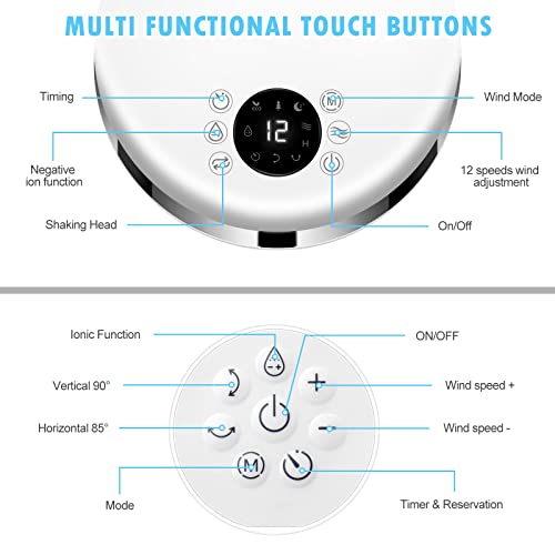 【12 velocità e 4 modalità】ventilatore casa ha 4 modalità (normale/naturale/sonno/modalità ECO) che possono essere regolate in base alle tue esigenze. ventilatore oscillante ha una regolazione della velocità del vento da livello 1 a 12 e non è limitato solo a 3 impostazioni di livello. Sono disponibili più opzioni di velocità del vento per incontrare differenti esigenze.