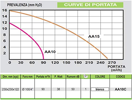 Silenzioso: solo 50 dB - Portata: 90 m³/h - potenza assorbita: 38 W