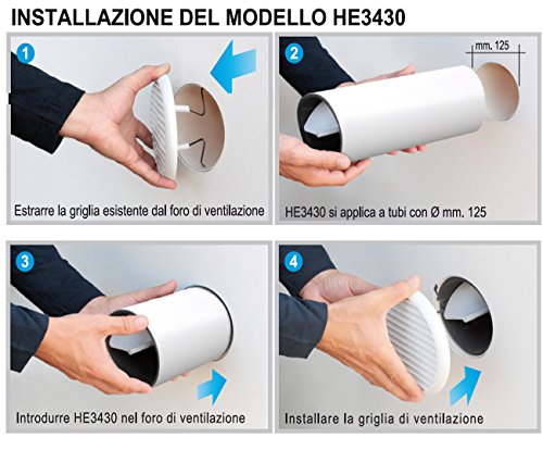 La Ventilazione HE3430 HE3430-Y Silenziatore Acustico Elicoidale per Fori, Bianco, 300 mm-120 mm, ø 120/125 mm