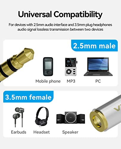 2. Vention 3,5 mm femmina a 2,5 mm maschio adattatore fornisce funzioni stereo / mono per convertire audio da 3,5 mm. La tua musica continua a suonare anche durante gli allenamenti più difficili.