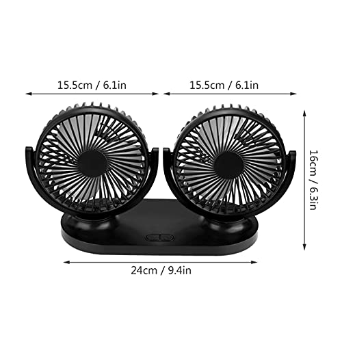 Ventola di raffreddamento per auto 12V, Ventola per auto a doppia testa Condizionatore d'aria portatile USB, Cruscotto di ventilazione oscillante che si collega all'accendisigari(Nero)