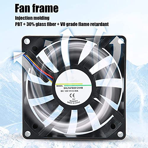 Ventola di raffreddamento, ventola dissipatore di calore da 12V 0,3 A 8 cm, sistema di raffreddamento della ventola della custodia standard a 4 pin, dispositivo di raffreddamento a basso rumore durevo