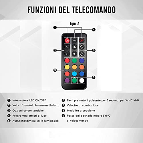 ✅ Puoi comandare le ventole tramite il telecomando in dotazione oppure tramite sincronizzazione tramite Motherboard 3 Pin, compatibili con Aura Sync, RGB Fusion, Mystic Light Sync (cavo motherboard non incluso).