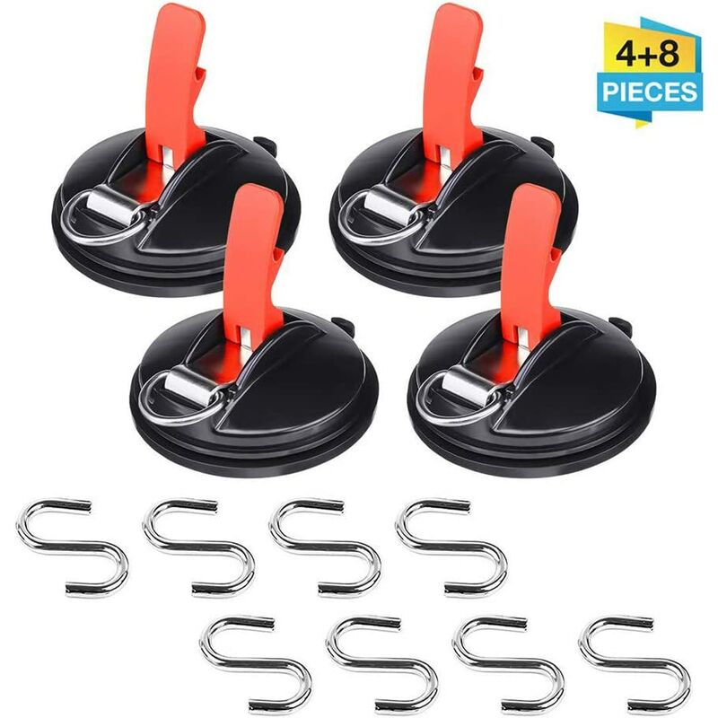 Alta qualità: diametro ventosa: 115 mm. 4 ventose a forma di D e 8 ganci a forma di S, la capacità della ventosa può raggiungere i 10 kg, il prodotto è realizzato con materiali di alta qualità, quindi può essere utilizzato a lungo. FACILE DA USARE UTILIZZO: Per i campeggiatori da esterno, il gancio a ventosa è la migliore soluzione senza viti, semplice e veloce. Basta posizionare la ventosa su una superficie del veicolo liscia, pulita e asciutta e ripiegare l'estremità del joystick. Per i campeggiatori all'aperto, l'anello a D può essere facilmente fissato al moschettone, mentre l'S- gancio può essere fissato alla cintura con clip. Ogni ancora può contenere fino a 50 libbre e le clip per lacci delle scarpe sono state testate fino a 200 libbre. Ventosa multifunzionale con gancio: il nostro gancio a ventosa è adatto per bagni e cucine. Finché funziona su vetro e ceramica puliti. Allo stesso tempo, non è necessario praticare fori nel muro ed è un prodotto molto ecologico. Puoi anche
