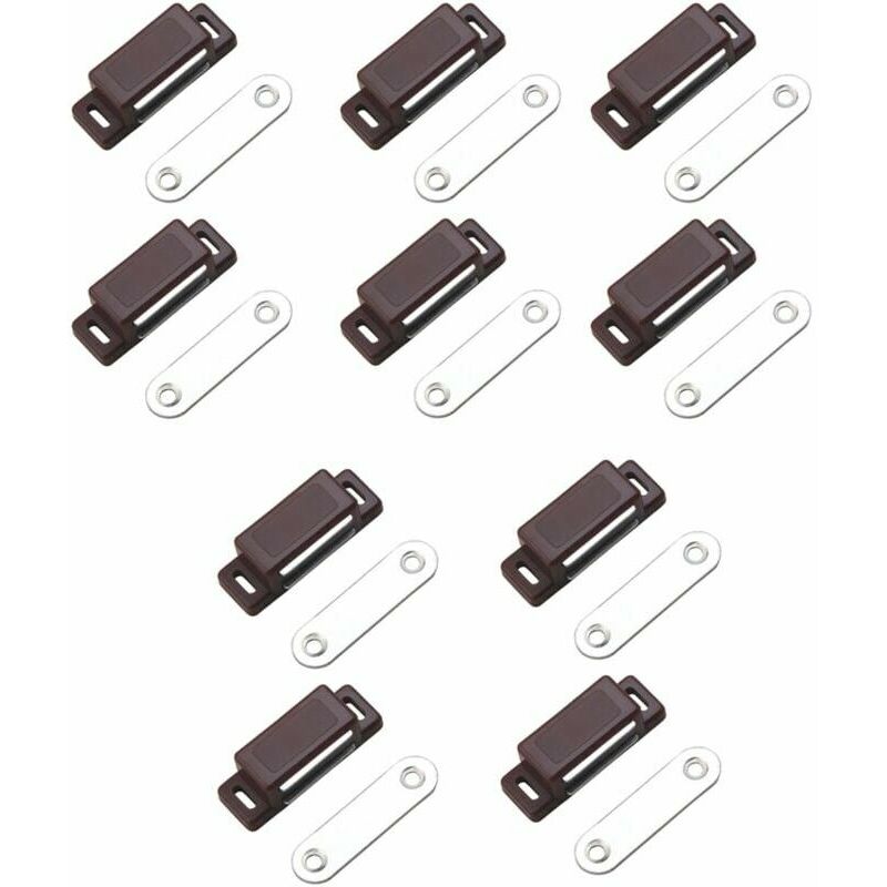 una roulotte dove una forte adesione è richiesto. Massima adesione: Per una perfetta adesione del magnete per anta del mobile è necessario il contatto diretto con la controparte metallica. Il fissaggio avviene con viti a testa svasata Connies. 2 magneti per armadi rifilati.t Contenuto: set di 10 chiusure con controparte in metallo. IL MATERIALE DI FISSAGGIO VIENE FORNITO. Custodia: plastica marrone - Controparte in metallo: acciaio zincato - Forza di tenuta: circa 4 kg - Misure: vedi foto Nota: le viti non sono incluse Quantità di ;
